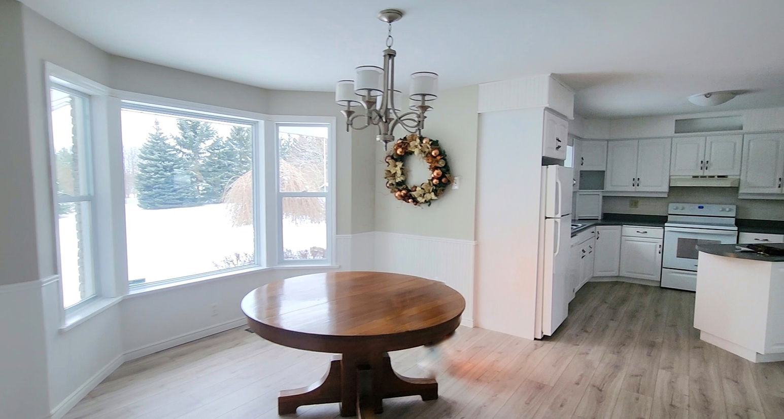 Open Concept Kitchen And Dining Area With Updated Flooring